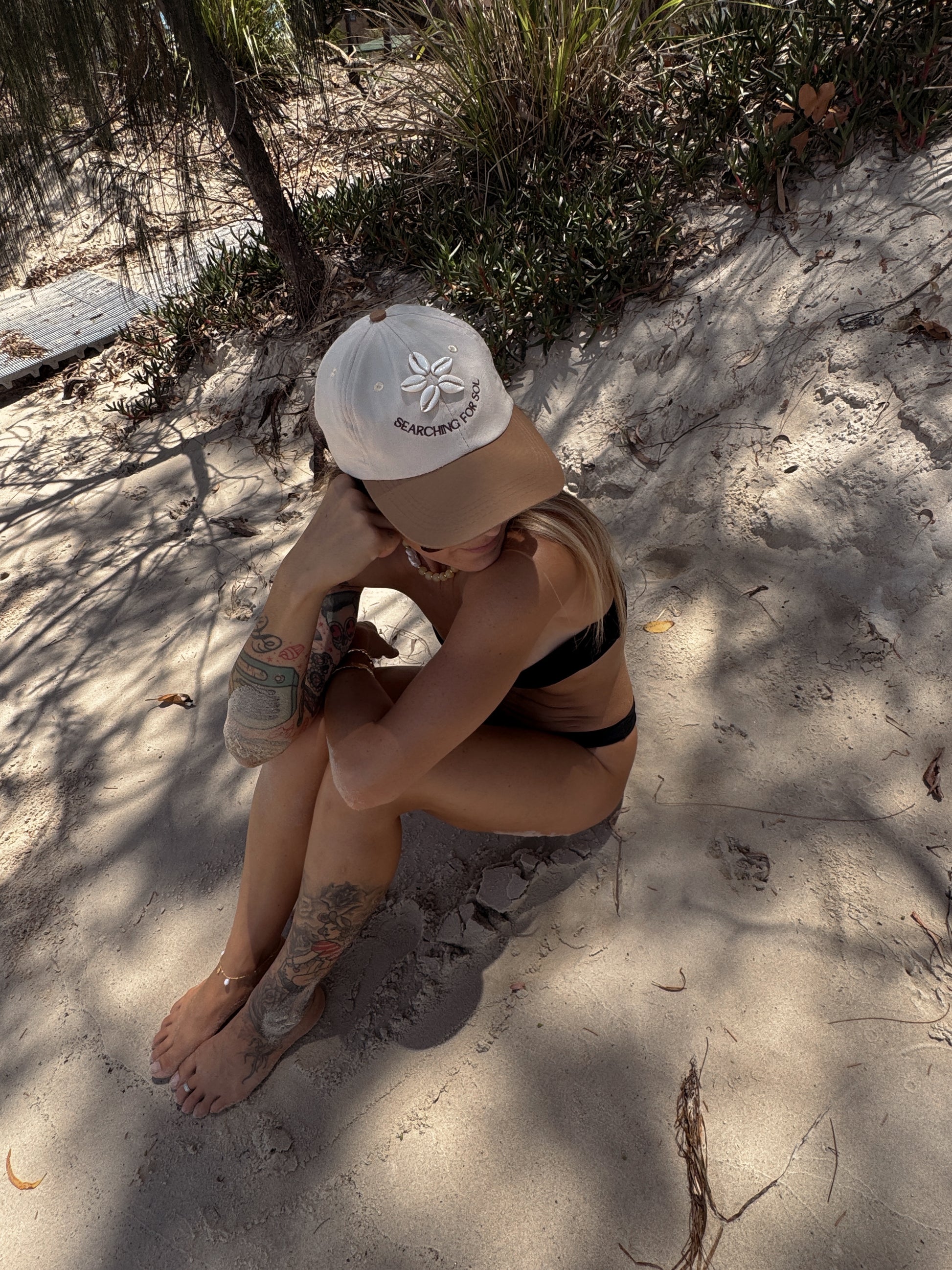Follow the sun wherever it leads 🌞 The Cowrie Compass Cap is an ode to salt, sand, and slow wanderings. Crafted from durable cotton with a sun-warmed tan brim and cream crown, this cap is finished with hand-stitched cowrie shells forming our signature compass design — a reminder to always find your way back to the sea.Perfect for coastal adventures, road trips, or those lazy golden afternoons, it’s lightweight, adjustable, and made for everyday wear.