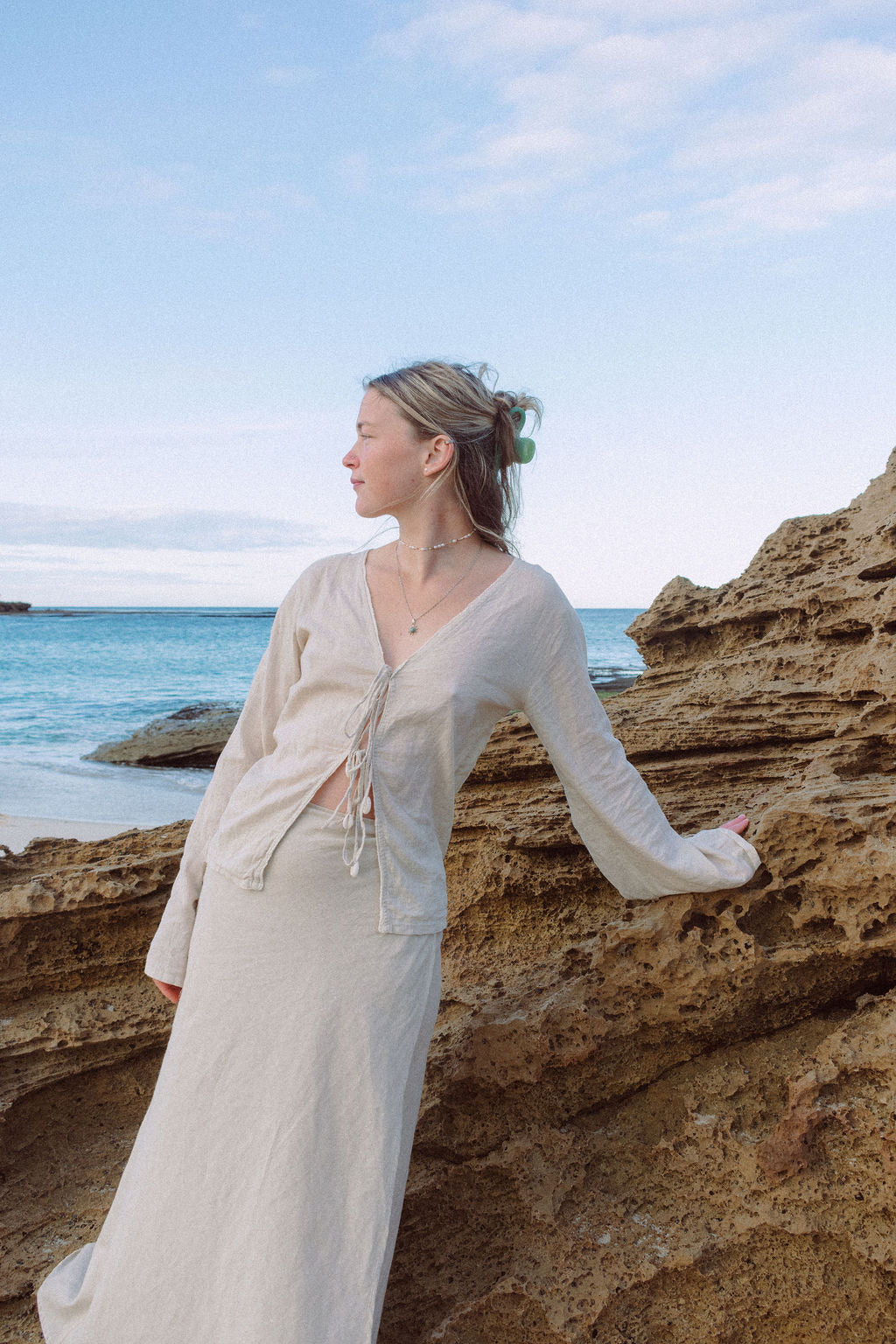 Follow the sun effortlessly. Crafted from a breathable blend of linen and cotton, our Sol Seeker Cowrie Shirt is your go-to for salty adventures and golden hours. Designed for sun chasers and soul searchers, this relaxed-fit shirt features hand-stitched cowrie shell detailing. Each one, a reminder to carry the ocean with you.